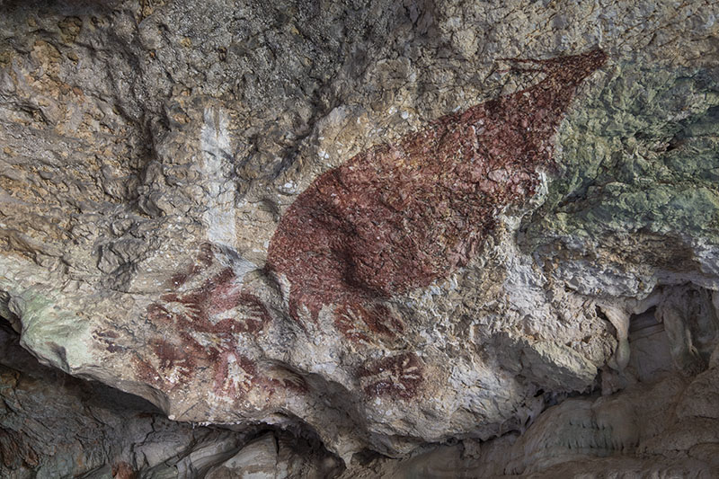 Anoa and Negative Hands (repainted), Leang Sumpang Bitta Sumpang Bitta, Pangkep South Sulawesi, INDONESIA 2018