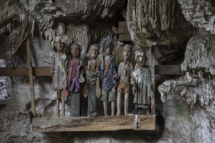 スラウェシ島、South Sulawesi地方、Tana Toraja。Suayaの洞窟に安置された人形、「タウタウ」。