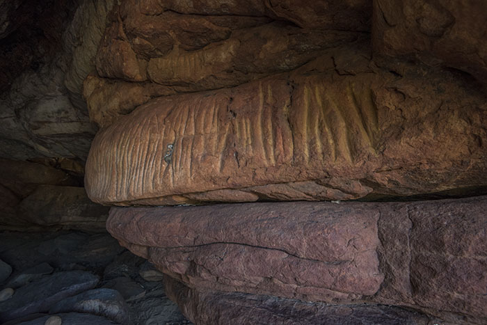 Grooves on the sandstone inside the cave, Upper Mitchell River Kimberley, Western Australia AUSTRALIA 2014