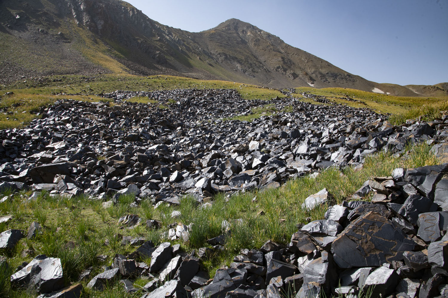 サイマルー・タッシュ。これらの岩塊多くに刻画が彫られている。