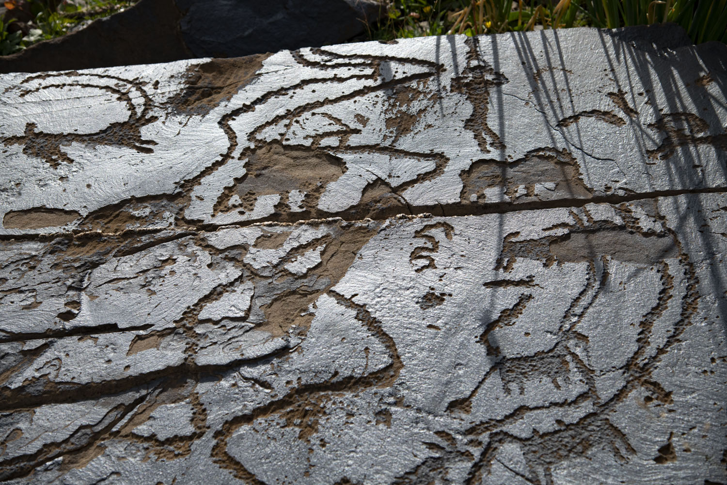 サイマルー・タッシュ。前頁の部分拡大。サイマルー・タッシュの刻画にはこうした並線が多く描かれる。これが道や川など、何か具体的なものを意味しているかどうかはわからない。