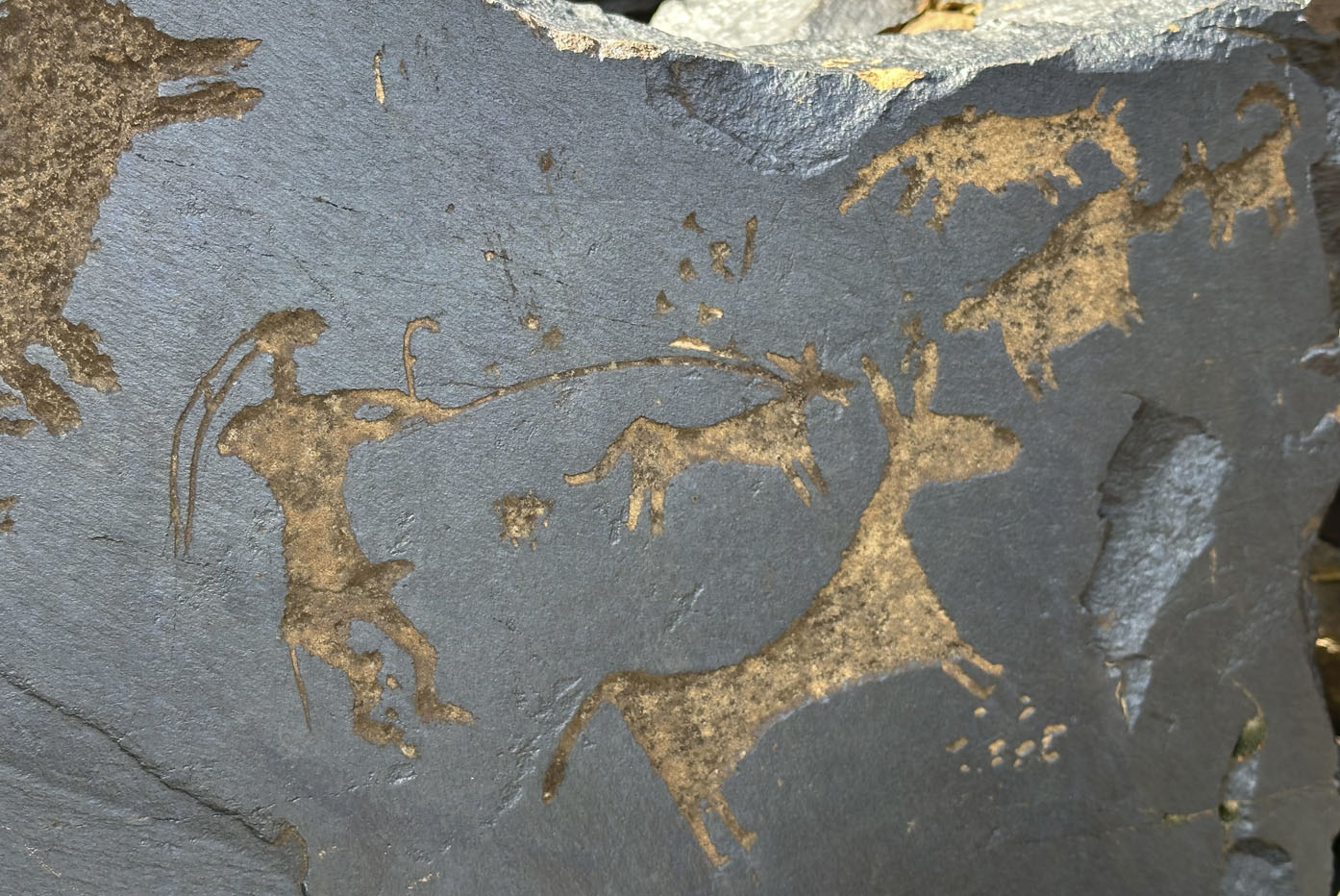 サイマルー・タッシュ。犬のような動物にロープをつけている人物に見えるが、頭から長い角のような、触角のようなものが伸びている。こうした髪形なのかとも思うが、尻尾のようなものが見えるのも気になる。