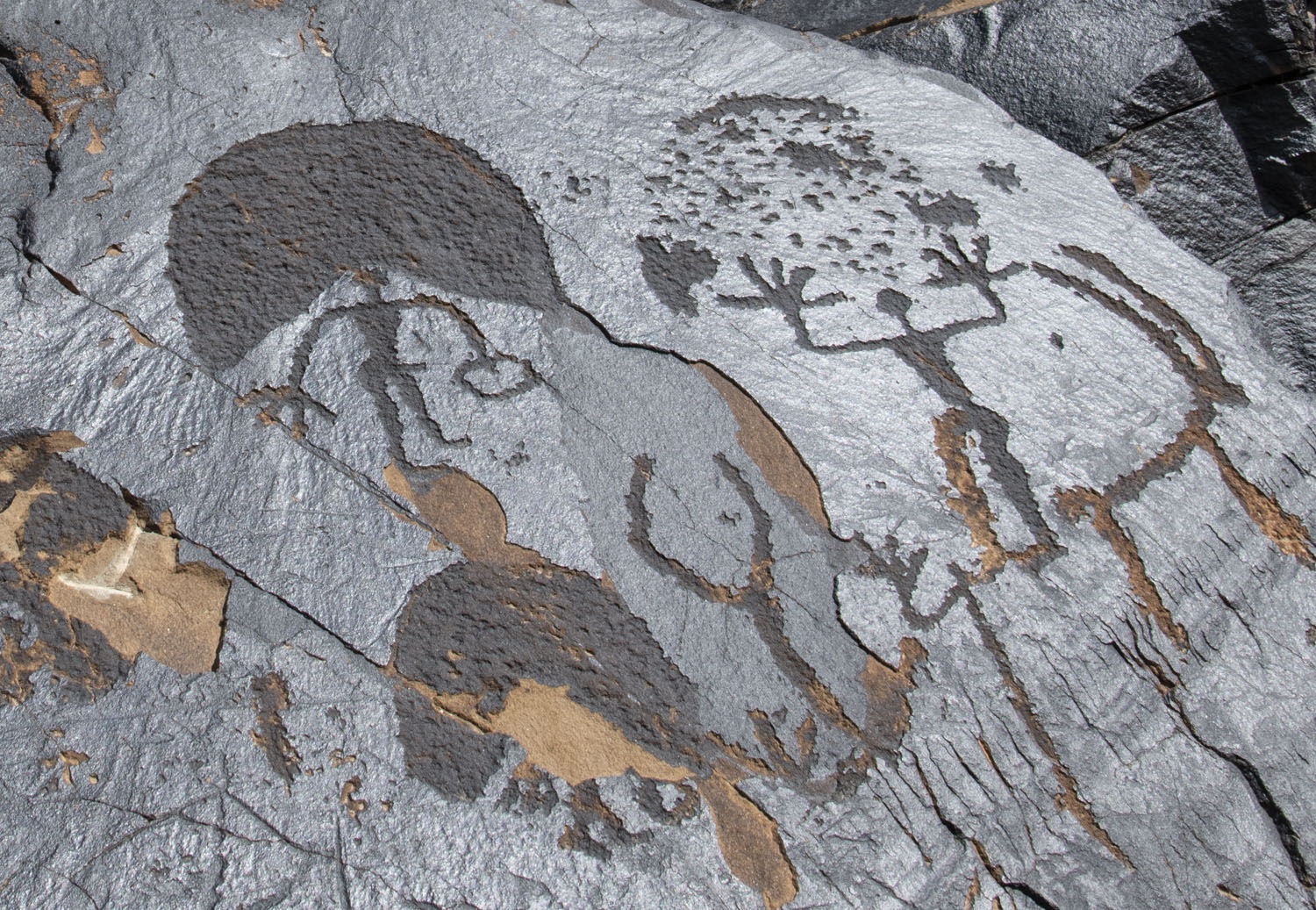 サイマルー・タッシュ。前頁の絵の部分拡大。左側は傘のようになっているが、右の人物とその上の細かいものはなんだろうか。