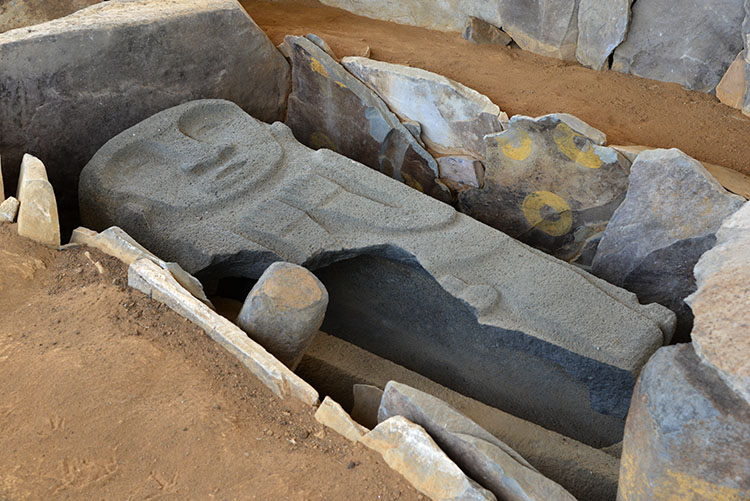 アルト・デ・ロス・イドロス考古学公園の石棺。石室の内側に彩色がみえる。