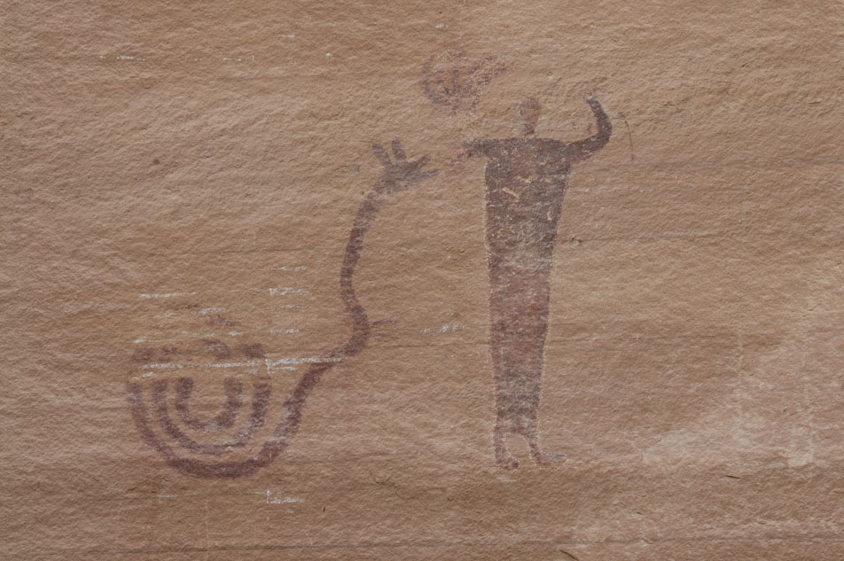 バックホーン・ウォッシュの壁画。ヘビと人。