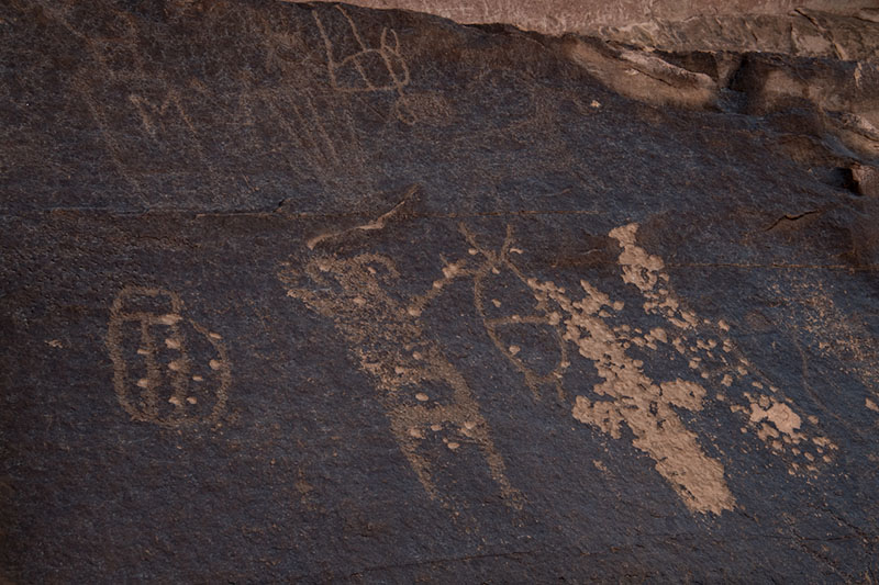 コートハウス・ウォッシュ・パネルの前にある岩に彫られたペトログリフ。左上に「E.T.タイプ」の人物像が。