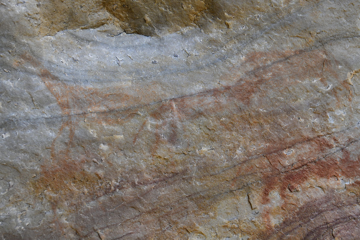 トゥルイジェスクラール、3番目の駐車場近くのサイトの絵。左の動物は首が長く、キリンのようにも見える。