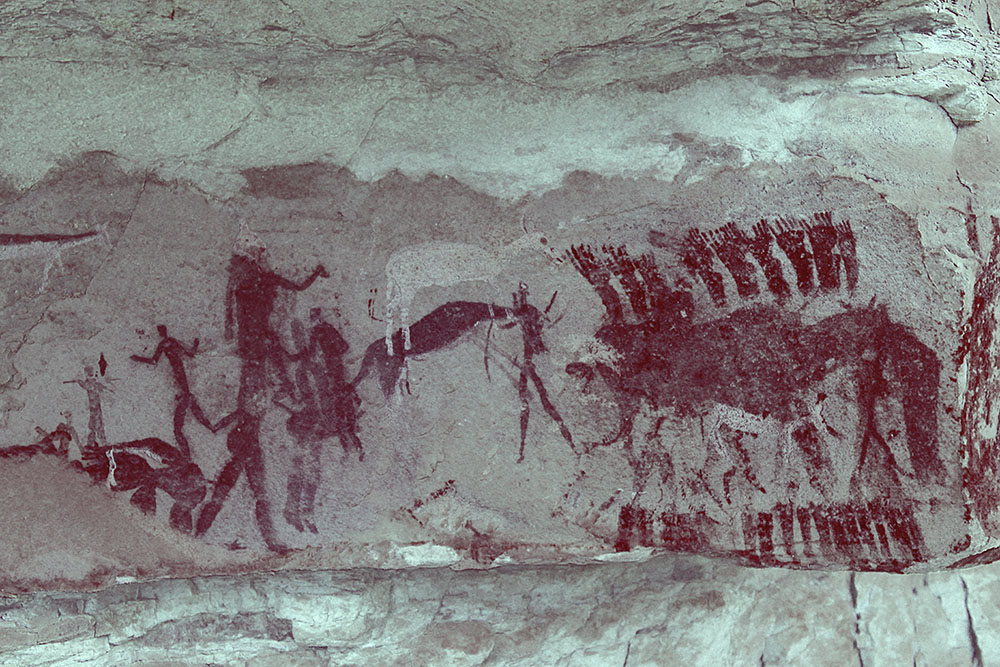 バトル・ケイヴの壁画。下は画像処理で鮮明に加工したもの。