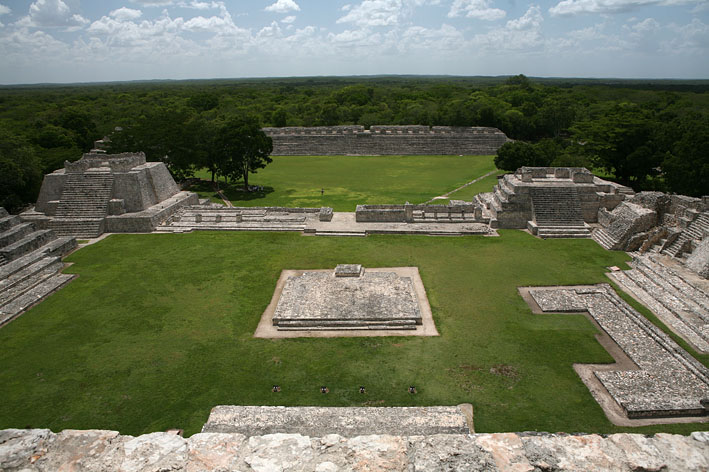 最も奥に見える横長の建物はNohochna(=大きな家)と呼ばれる建物で、行政的な施設だったとみられている。