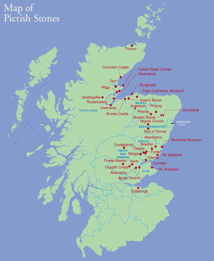 本サイトで紹介しているピクトの石碑の所在地です。地名をクリックすると各頁に移動できます。