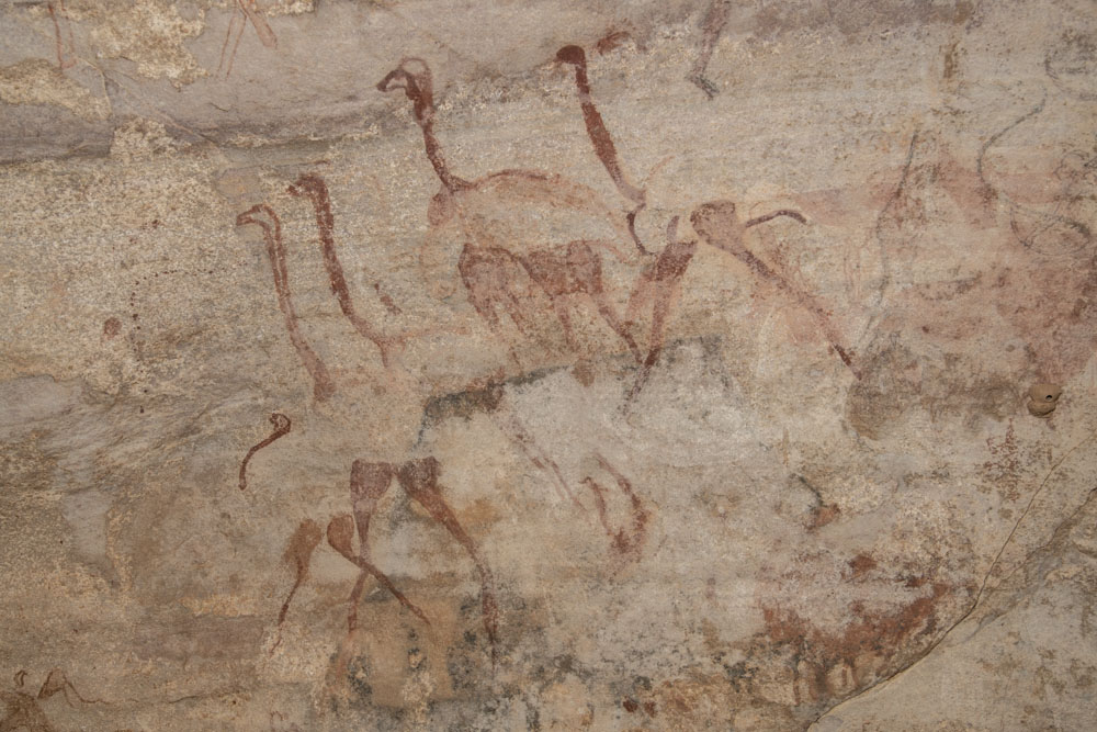 タッシリ・ナジェール、タヒラヒIの壁画。ダチョウ。